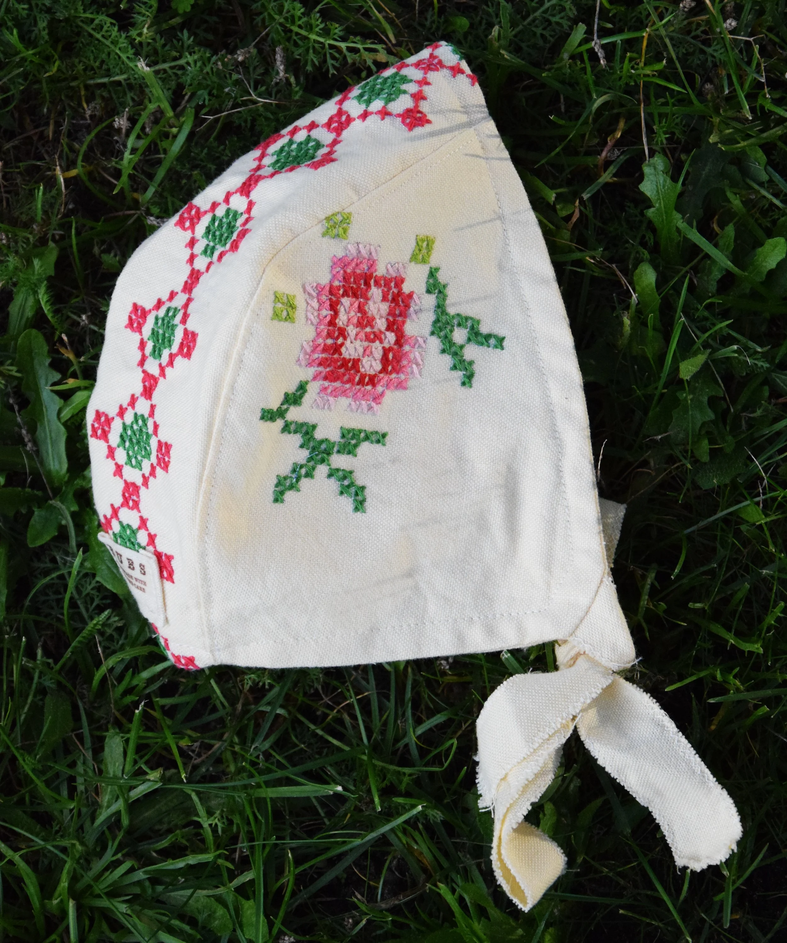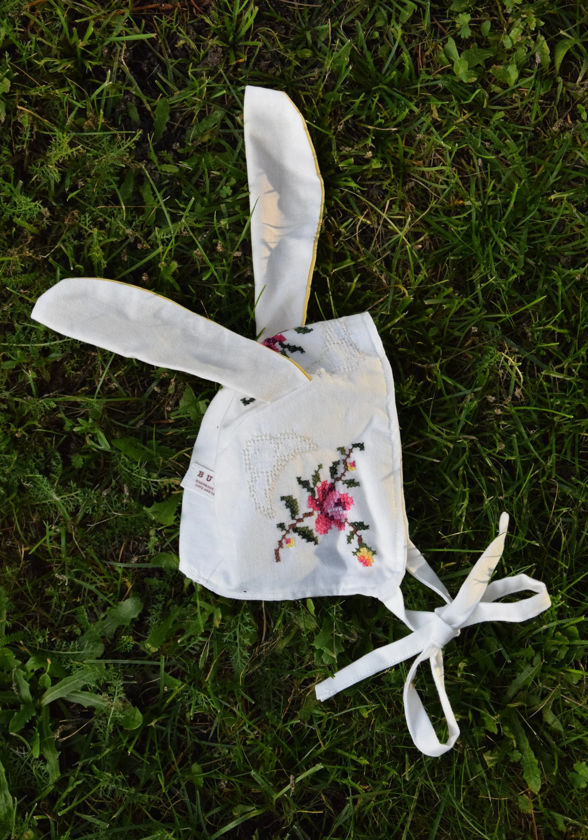 These baby hats are made from fabric scraps, old tablecloths, bed sheets and other types of un/re/used fabrics