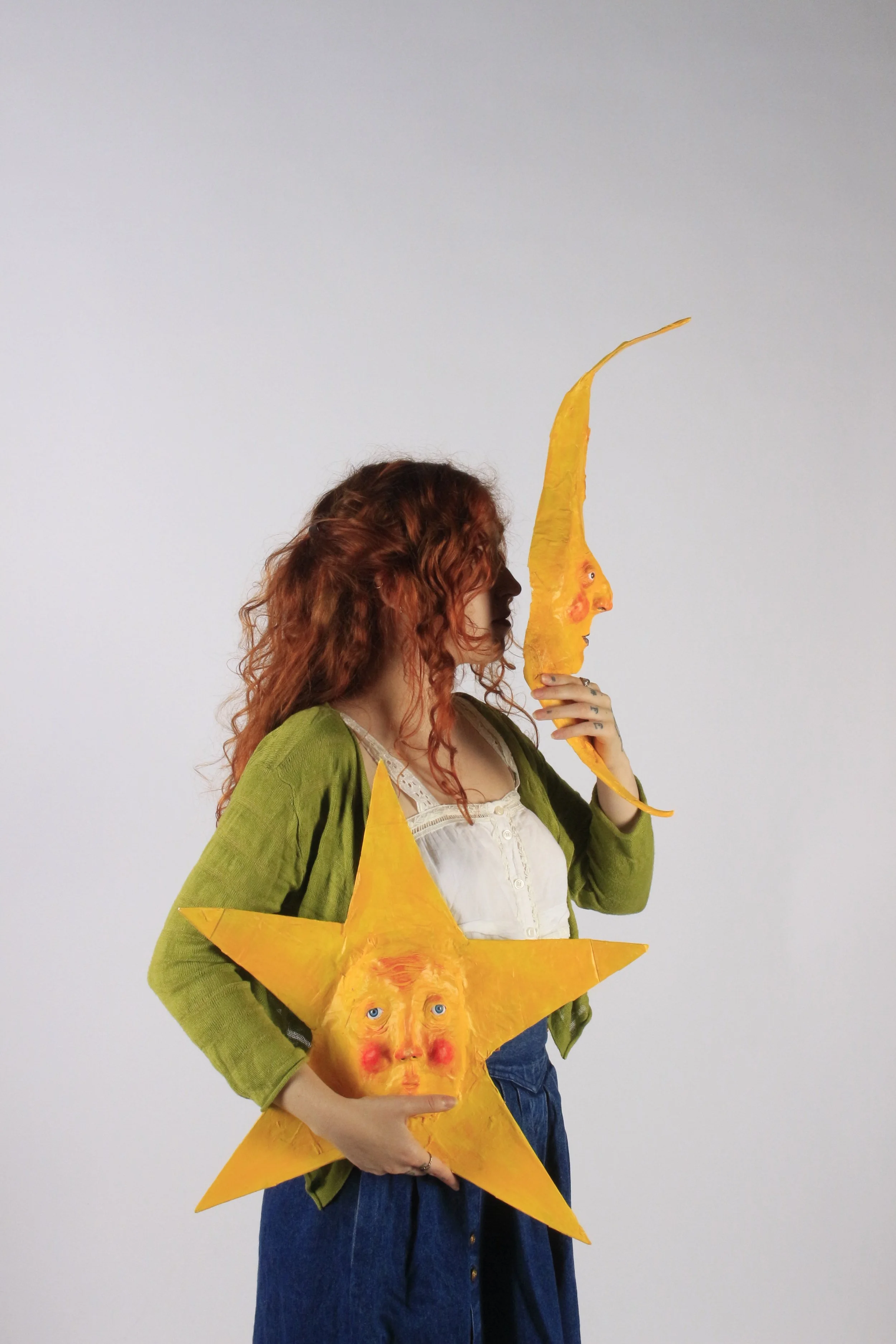 In this project I was inspired by masks made and use within slavic folklore. Both masks are made with salvaged materials like old news papers and cardboard using the papier-mache techique. Both masks are wearable